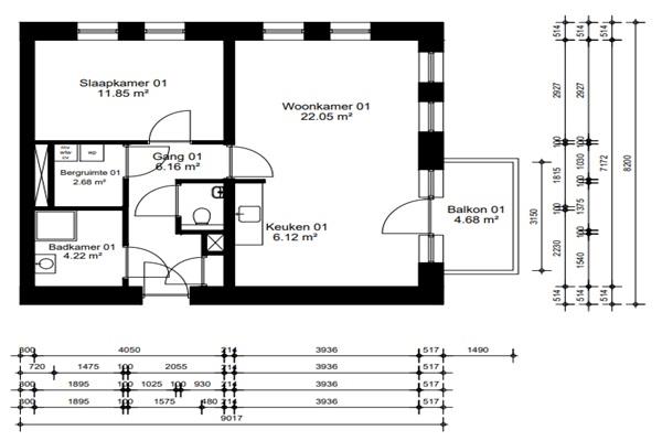 Dit mooie appartement is voorzien van een woonkamer met open keuken, 1 slaapkamer, een badkamer en een apart toilet in de hal.