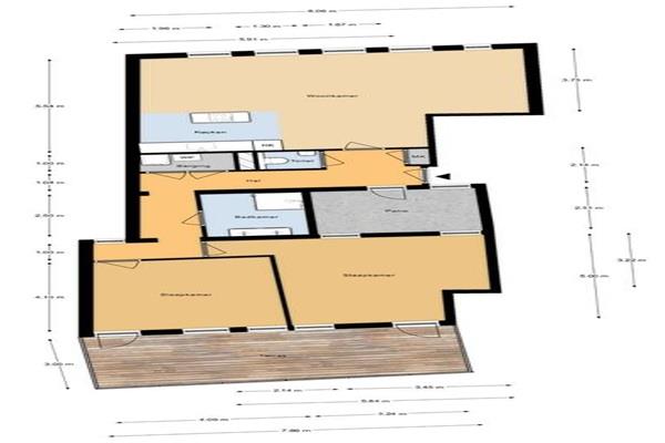 Het appartement heeft twee ruime slaapkamers welke zijn gelegen aan de achterzijde van het appartement en uitkomen op het terras. De badkamer is betegeld met lichte tegels en o.a. ingericht met een inloopdouche en dubbele wastafel met meubel.
