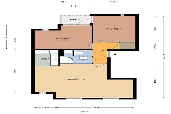 De badkamer is voorzien van een douche, wastafel en aansluiting voor de wasmachine. Er is een separaat toilet met fontein. Beide slaapkamers zijn ruim van formaat en geschikt als volwaardige slaap-, werk- of logeerkamer.