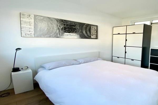 De slaapkamer is aan de rustige achterzijde van de woning gesitueerd en voorzien van een tweepersoonsbed en een ruime linnenkast. Vanuit de slaapkamer is de badkamer bereikbaar; deze is volledig betegeld en beschikt over een douche, wastafel, designradiator en spiegel. Separaat toilet aanwezig in de hal.