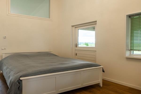 Vanuit de woonkamer tref je de ruime slaapkamer die voorzien is van een tweepersoonsbed en een kast. Aangrenzend is de riante badkamer. Deze is voorzien van badkamermeubel met dubbele wastafels, ruime inloopdouche, en toilet.