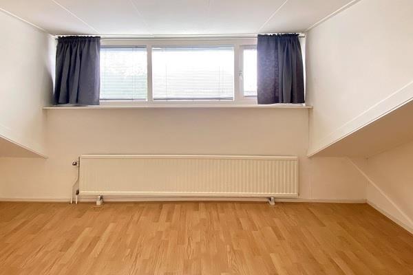 Lichte woonkamer met open keuken aan de achterzijde van de woning.