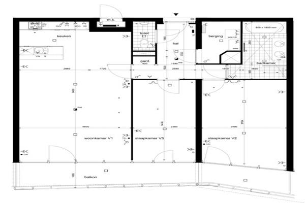 –Woonkamer met open keuken. De keuken is voorzien van inbouwapparatuur en een kookeiland
