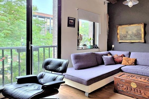 Tweede verdieping: entree van de woning, hal, gesloten keuken voorzien van diverse inbouwapparatuur, royale woonkamer met hoge plafonds en veel lichtinval, eerste slaapkamer aan de achterzijde en een separaat toilet.