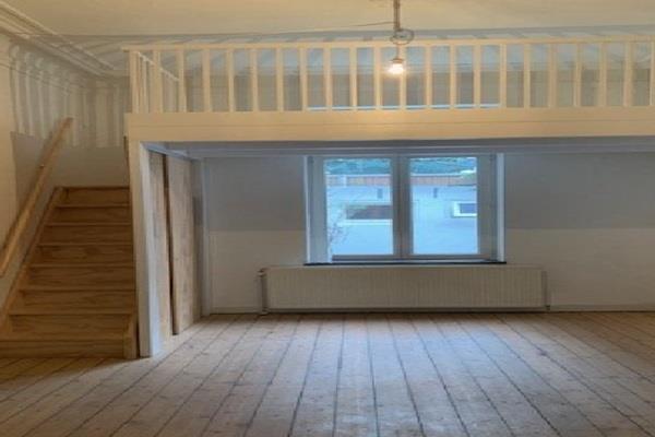 Sfeervolle woonkamer met schouw, vide (geschikt als berging of extra slaapruimte) en kastenwand