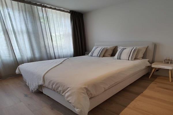 Via de keuken bereikt u de slaapkamer, voorzien van een comfortabel tweepersoonsbed, twee nachtkastjes en een kledingkast met dubbele deuren. Deze slaapkamer met al zijn details is gezellig en goed ingericht.
