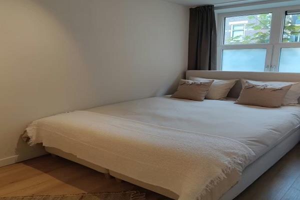 De slaapkamer is voorzien van een tweepersoonsbed, beddengoed en een grote kledingkast voor voldoende opbergruimte.