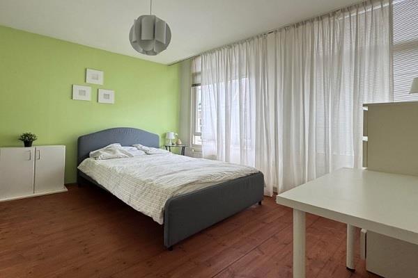 Hal, separaat toilet, technische ruimte met voldoende ruimte voor een wasmachine, lichte woonkamer voorzien van een open keuken met diverse apparatuur waaronder een koelkast, vriezer, oven en vaatwasser. Vanuit de woonkamer heb je directe toegang tot het ruime balkon waar je kunt genieten van de rust van de achtertuinen. Badkamer met een aparte douche, wastafel met wastafelmeubel en een handdoekradiator. Slaapkamer voorzien van veel opbergruimte en kasten, 2e kamer die perfect gebruikt kan worden als study of gastenkamer door middel van de slaapbank.