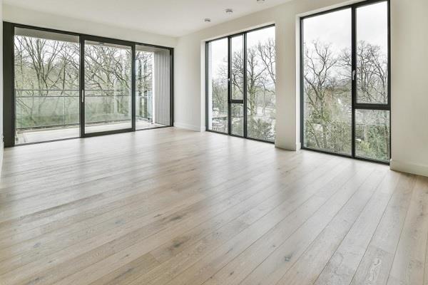 De slaapkamer is ruim opgezet en bevindt zich aan de rechterzijde van de woning. Dankzij de grote raampartij is ook hier veel natuurlijk licht aanwezig.