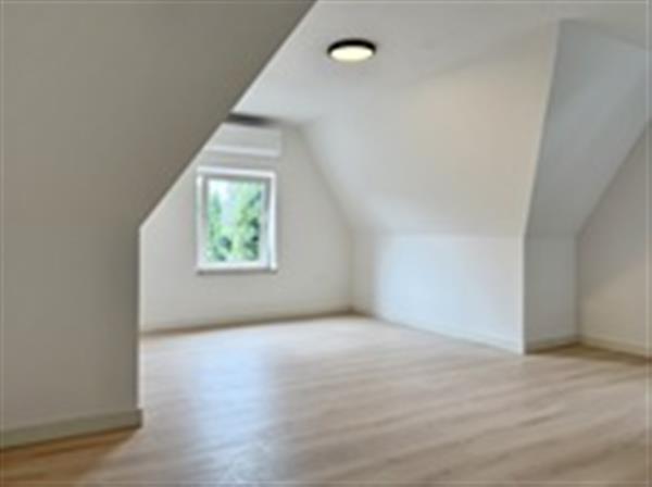 Het schuine dak geeft het appartement charme en een warme, huiselijke sfeer. Hoewel er geen buitenruimte is, zorgen de vele ramen voor veel natuurlijk lichtinval.