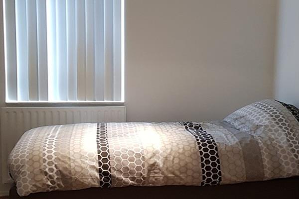 2e slaapkamer met eenpersoonsbed en garderobekast.