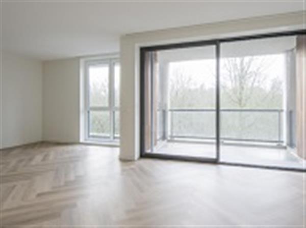 Vanuit de hal zijn de woonkamer, de twee slaapkamers, badkamer en het aparte toilet te bereiken. De brede woonkamer heeft een prachtige lichtinval vanwege de grote raampartijen en de schuifpui. Er is ruimte genoeg voor een heerlijke eettafel en ruime zithoek. De woonkamer geeft tevens toegang tot het ruime balkon.