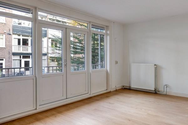 Het appartement heeft een oppervlakte van bijna 100 vierkante meter en is verdeeld over de begane grond en eerste verdieping van het pand. Op de beneden verdieping van het appartement bevindt zich de doorzon woonkamer (33.6 m2) met aan de achterzijde de gesloten keuken. De keuken bestaat uit een keukenblok met inbouwapparatuur. Vanuit zowel de woonkamer als de keuken is de zonnige tuin te bereiken welke is voorzien van een berging. Op de begane grond bevindt zich ook een separaat toilet en het CV hok met wasmachine aansluiting.