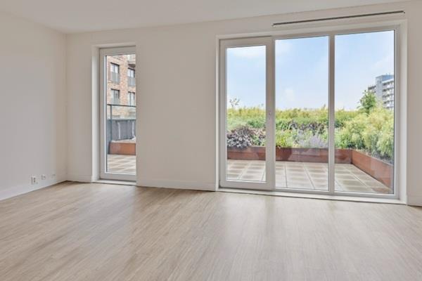 Vanuit de hal zijn alle vertrekken van het appartement te bereiken. Aan de linkerzijde van het appartement zijn de twee slaapkamers gelegen van circa 10- en 8 vierkant meter. Tevens bevinden zich aan deze zijde de ruime inpandige berging met wasmachine/droger aansluiting en badkamer met ruime douche en wastafelmeubel. Ook beschikt het appartement over een separaat toilet. Aan de rechterzijde van het appartement is de ruime woonkamer van circa 36 m2 te vinden met open keuken welke voorzien is van alle benodigde inbouwapparatuur.