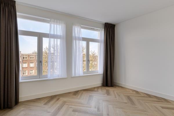 Aan de voorzijde van de woning ligt de lichte, sfeervolle woonkamer met een moderne open keuken. De keuken is volledig uitgerust met hoogwaardige apparatuur, waaronder een koel-vriescombinatie, wijnklimaatkast, inductiekookplaat, combi-oven, vaatwasser, afzuigkap en een Quooker, wat deze ruimte ideaal maakt voor kookliefhebbers. Aan de rustige achterzijde bevinden zich twee ruime slaapkamers van circa 17 m² en 10 m². De moderne badkamer is voorzien van een regendouche en een dubbele wastafel met meubel. Daarnaast beschikt het appartement over een separaat toilet en een praktische wasruimte met plek voor wasmachine en droger. Het absolute hoogtepunt van deze woning is het royale dakterras van maar liefst 32 m², waar u heerlijk kunt ontspannen, dineren in de avondzon of lange zomeravonden doorbrengen met uitzicht over de stad.