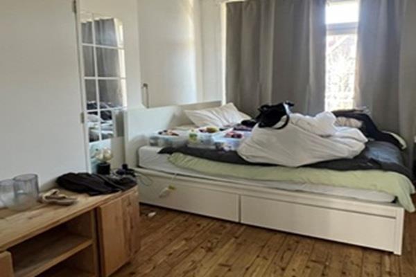 Bij binnenkomst kom je in de hal, die toegang biedt tot de lichte doorzonwoonkamer. Aangrenzend bevindt zich de eerste slaapkamer. Aan de achterzijde ligt de eenvoudige houten keuken (zonder apparatuur). Zowel vanuit de keuken is er toegang tot het balkon. In de hal bevinden zich tevens het separate toilet en de trapopgang naar de derde etage.