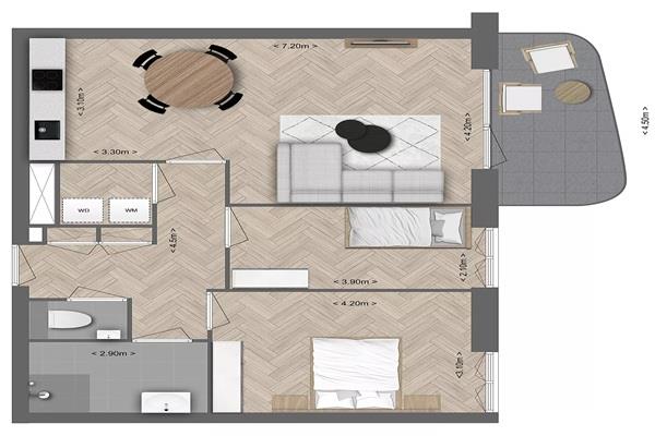 Het appartement heeft twee ruime slaapkamers. Dat maakt het geschikt voor een stel, een klein gezin of iemand die simpelweg extra ruimte wil voor werk of hobby’s. De badkamer is netjes en voorzien van een douche en wastafel.