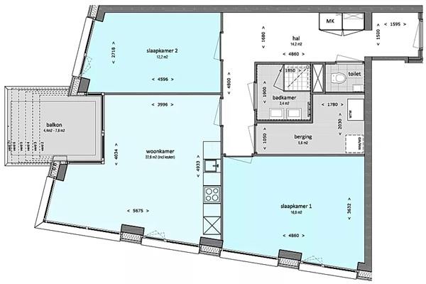 De badkamer sluit aan op de hoogwaardige afwerking van de rest van het appartement en is voorzien van een ruime inloopdouche, een moderne wastafel en een spiegel. Het toilet is separaat, wat bijdraagt aan het wooncomfort. Elk detail in de afwerking is zorgvuldig gekozen en draagt bij aan een gevoel van luxe en rust.