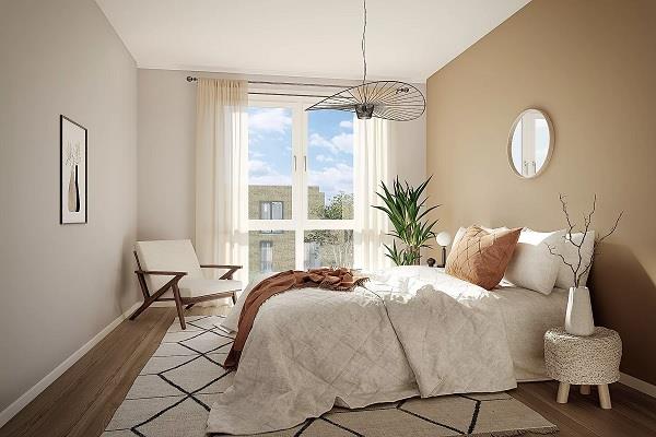 De woning beschikt over een ruime en lichte woonkamer met open keuken, waar grote raampartijen zorgen voor een prettige lichtinval. De open opzet maakt dit een ideale plek om te ontspannen of gezellig samen te zijn. Vanuit de woonkamer is er een directe verbinding met het balkon, een fijne buitenruimte waar je kunt genieten van de buitenlucht en het groene uitzicht.