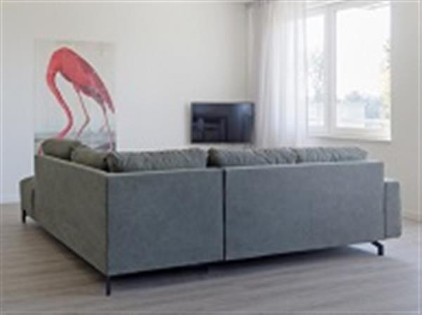 De ruime en brede woonkamer is het middelpunt van het appartement met een comfortabele grote bank, stoelen, salontafel, dressoirkasten en een royale tv. Het appartement ademt vooral de ruimte in met zijn vrijstaande eethoek met 6 persoons eettafel, perfect als u thuis moet werken.