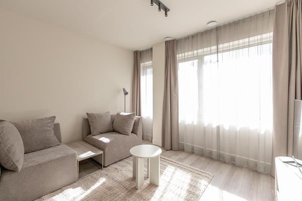 De appartementen zijn volledig gemeubileerd. De praktische indeling bestaat uit een woonkamer met open keuken, een slaapkamer en een moderne badkamer. Ideaal voor een comfortabel tijdelijk verblijf.