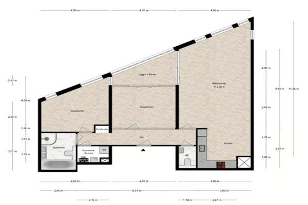De centrale entree geeft toegang tot de lift en de berging. Tevens toegang tot de ondergrondse garage met een autoliftsysteem. Met d elift kom je op de vierde verdieping. Je komt binnen en de hal alwaar een garderoberuimte is, een apart toilet met fonteintje en de technsche ruimte met een aansluiting voor een wasmachine. Vervolgens kom je in de ruime woonkamer met veel ramen welke veel lichtinval geven en ook een mooi uitzicht. Aangenzend aan de woonkamer is een loggis welke goed te gebruiken is als studeerplek of home-office. De open keuken is voorzien van allerlei inbouwapparatuur zoals een koelkast, vaatwasser, combi-magnetron, afzuigkap en een inductiekookplaat. Er zijn twee ruime slaapkamers. De badkamer is voorzien vn een ligbad, aparte douche, dubbele wastafen en het tweede toilet.