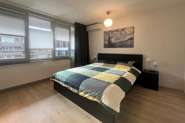 Eetkamer met half open keuken. De keuken is voorzien van een inductiekookplaat met afzuiging, koelkast met vriesvak en een vaatwasser.