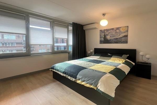 Eetkamer met half open keuken. De keuken is voorzien van een inductiekookplaat met afzuiging, koelkast met vriesvak en een vaatwasser.