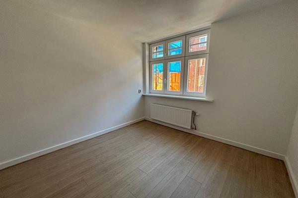 De hal biedt toegang tot alle vertrekken. Aan de voorzijde bevinden zich de woonkamer en één slaapkamer. Aan de achterzijde ligt de dichte keuken, voorzien van alle inbouwapparatuur en met toegang tot het balkon. De tweede slaapkamer is eveneens aan de achterzijde gelegen. De badkamer bevindt zich centraal in het appartement en is uitgerust met een inloopdouche, wastafel en toilet.