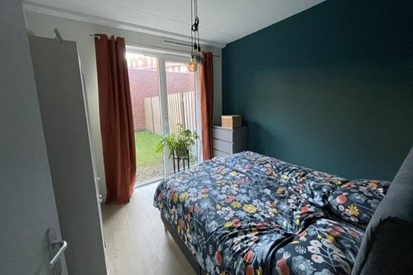 - Deels betegelde badkamer voorzien van inloopdouche, toilet en wastafel;