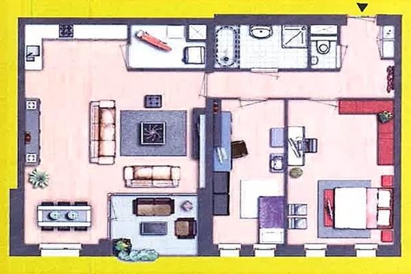 De royale masterbedroom van maar liefst 23 m² biedt volop ruimte voor een groot bed en een royale kastenwand. De tweede slaapkamer is ruim en ideaal te gebruiken als studeer- of hobbykamer. De volledig betegelde badkamer is voorzien van een inloopdouche en wastafel, en er is een apart toilet voor extra comfort.