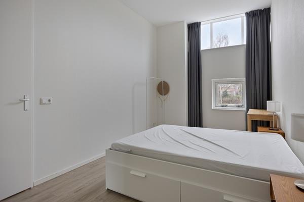 Slaapkamer: Ruime slaapkamer (ca. 5.60 x 3.01 m) met PVC-vloer, vloerverwarming en houten kozijnen met isolerende beglazing.