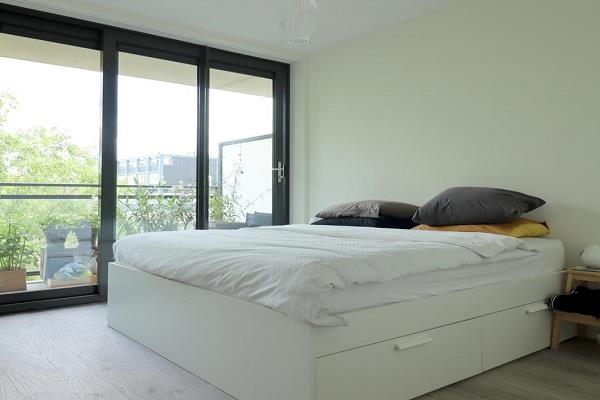 Ruime hal welke toegang biedt tot de twee slaapkamers, de berging, separaat toilet, badkamer en de woonkamer met open keuken. Vanuit de woonkamer en een van de slaapkamers is het ruime balkon te bereiken.