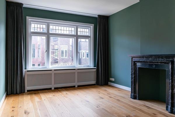 Via het verzorgde portiek leidt u de weg naar de entree op de eerste verdieping. Bij binnenkomst valt direct op hoeveel daglicht de woning binnenvalt dankzij de prachtige originele glas-in-loodramen. De woonkamer vormt het kloppend hart van de woning, met vaste kasten en een doorlopend parket dat elegantie en warmte uitstraalt. Aan de voorzijde geniet u van een lichte zithoek, terwijl aan de achterzijde de royale eetkamer met openslaande deuren naar het balkon uitnodigt tot lange diners en gezellige avonden.