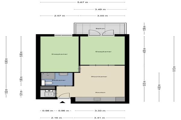 Twee slaapkamers waarvan 1 slaapkamer toegang biedt tot het balkon.