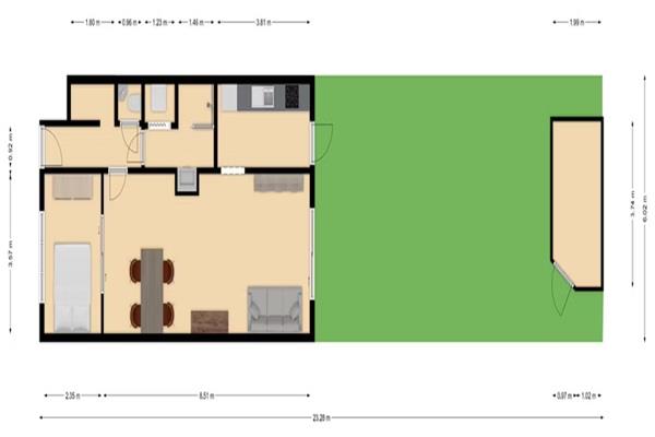 Het appartement is gelegen op de begane grond en beschikt over een eigen tuin. Het appartement is recentelijk gerenoveerd (2021) En er is in 2025 een nieuwe schuur geplaatst met zonnepanelen. Het appartement is modern en wordt volledig gemeubileerd opgeleverd.