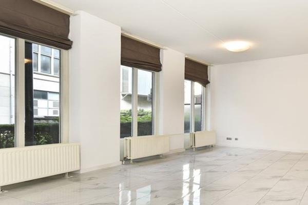 Entree op de begane grond, hal met berging en modern toilet, ruime woonkamer ca. 7.80 x 4.70 deels 3.85 met een plafondhoogte van 3.10 meter, hoge ramen en dubbele openslaande deuren naar de besloten tuin aan de achterzijde met een terras van 20 m². Ruime split-level open eetkeuken ca. 3.75 x 3.25 voorzien van alle benodigde inbouwapparatuur.