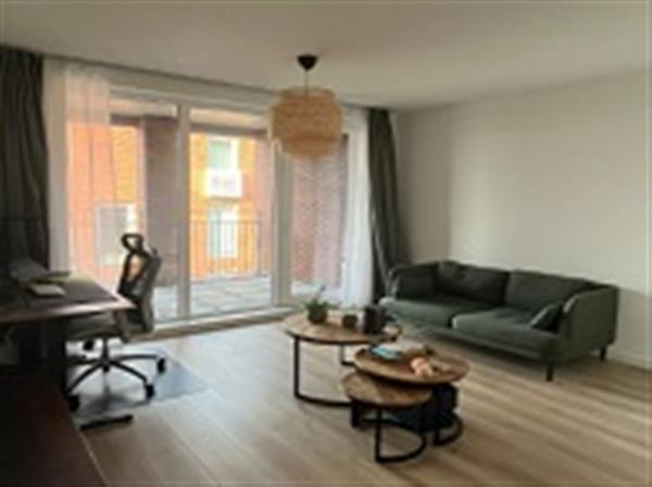De ruime woonkamer met open keuken ligt aan de achterzijde van het appartement. Deze beschikt over grote raampartijen en geeft toegang tot het balkon. De open keuken welke is voorzien van een moderne en eigentijdse keukenopstelling met diverse inbouwapparatuur. Hier is ook voldoende ruimte voor het plaatsen van een eettafel.