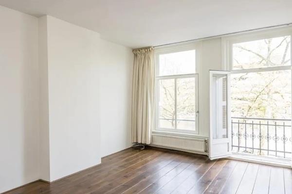 Entree, hal, aparte toilet (gerenoveerd). Ruime woonkamer aan de voorzijde met frans balkon en grachtenzicht.