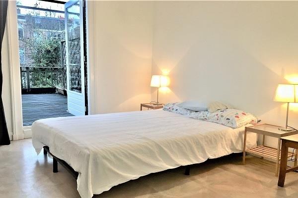 slaapkamer voorzien van 2 persoonsbed en openslaande deuren naar het dakterras op het zuid-westen