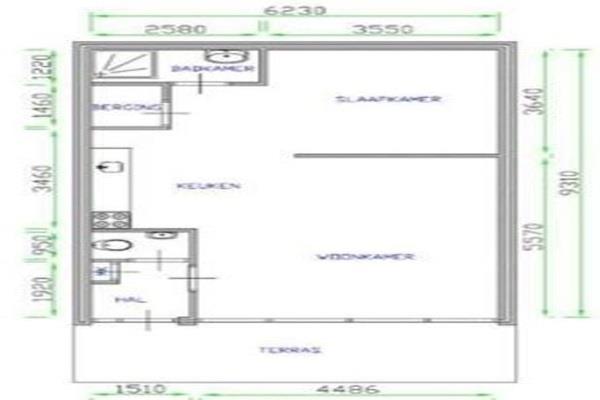 Via de hal kom je in de lichte, open woonkamer. De hoge raampartijen zorgen voor veel daglicht en een prettige sfeer. De woonkamer is netjes afgewerkt met een laminaatvloer en biedt voldoende ruimte voor een zit- en eethoek.