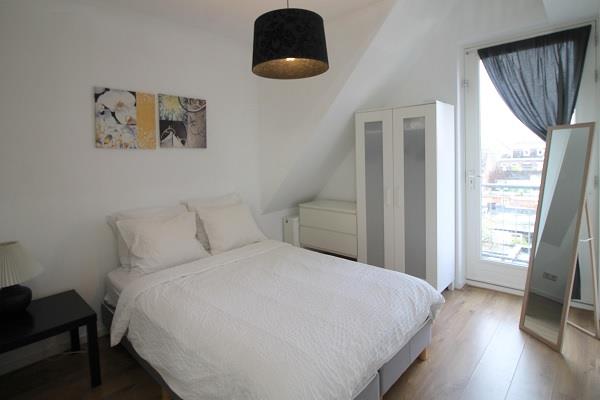 Slaapkamer met toegang tot een balkon aan de achterzijde (afmeting: 3,5 x 1,20 m).