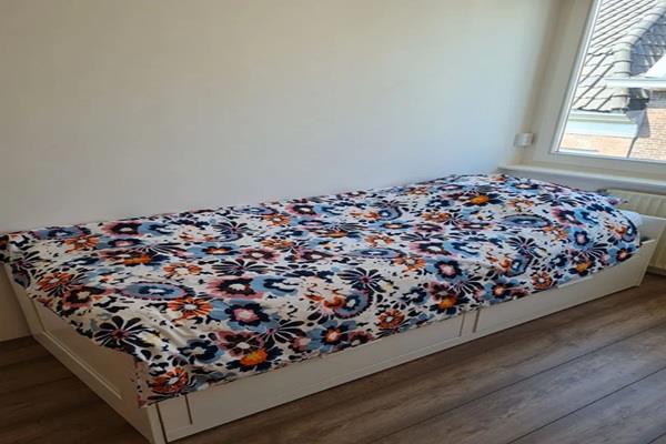 2e verdieping: overloop, hoofdslaapkamer met een tweepersoonsbed, grote kledingkast, gasten slaapkamer met een eenpersoonsbed (uitbreidbaar tot een tweepersoonsbed), werkkamer en een moderne badkamer met douche, wastafel, 2e toilet, wasmachine en droger. De woning wordt alleen gemeubileerd te huur aangeboden voor een single of stel. Niet geschikt voor gezinnen.