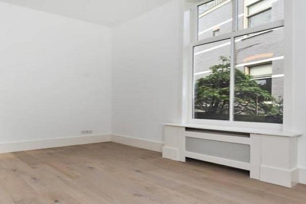 Entree appartement op straatniveau. Ruime hal met toegang tot het toilet met fonteintje en berging. Ruime en heerlijk lichte woon-/eetkamer met luxe moderne half open keuken voorzien van hoogwaardige inbouwapparatuur. Vanuit de eetkamer d.m.v. openslaande deuren toegang tot het balkon. Verder geeft de woonkamer d.m.v. openslaande deuren toegang tot de voortuin. Slaapkamer gelegen aan de achterzijde.