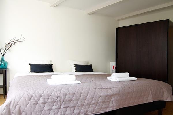 Via het gedeelde trappenhuis is de entree op de eerste verdieping. Op deze etage vind je een slaapkamer en de badkamer met een ligbad, een toilet en een wastafel. Op de tweede etage bevindt zich de open keuken en eetkamer. De keuken is voorzien van een afwasmachine, ijskast, oven en een gaskookplaat. De woonkamer is gelegen op de derde etage. Op de zolderetage bevindt zich de tweede slaapkamer met toegang tot het dakterras. Ook is er een wasmachine en droger aanwezig.