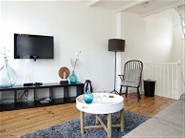 De ingang op de eerste verdieping is bereikbaar via de gedeelde trap. Op deze verdieping vindt u een slaapkamer en een badkamer met ligbad, toilet en wastafel. De tweede verdieping herbergt de open keuken en eetruimte. De keuken is uitgerust met een vaatwasser, koelkast, oven en gaskookplaat. De woonkamer bevindt zich op de derde verdieping. Op de zolderverdieping is een tweede slaapkamer met toegang tot het dakterras. Er zijn ook een wasmachine en een droger aanwezig.