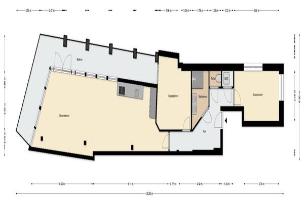 Aan de achterzijde van het appartement de woonkamer en open keuken. Zeer helder dankzij de grote ramen rondom de hele kamer. Voor extra comfort is het hele appartement voorzien van airconditioning. De keuken is voorzien van alle hedendaagse inbouwapparatuur, zoals: afzuigkap, vaatwasser, grote inbouwkoelkast met vriesvak en veel opbergruimte.
