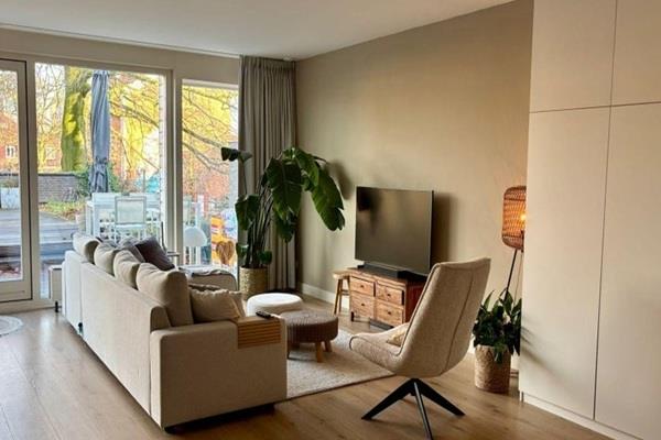 Het woongedeelte heeft twee openslaande deuren naar het privéterras van 100 m2.