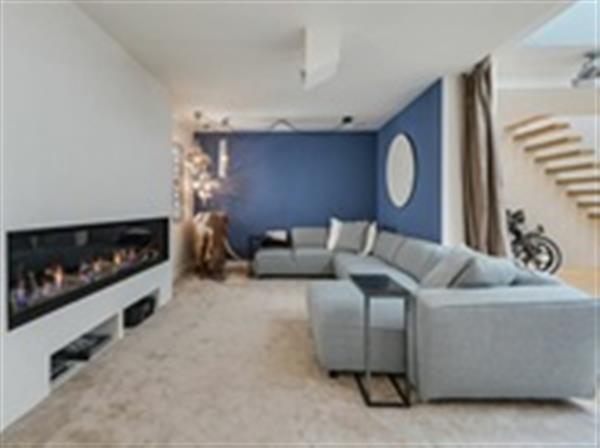 De gezellige, ruime eetkamer is voorzien van Velux skylights wat zorgt voor een overvloed aan natuurlijk licht. De skylights zijn op afstand, of met een app bedienbaar. De sfeervolle woonkamer is voorzien van een moderne haard, ingebouwde speakers en een projector waardoor er op groot scherm tv gekeken kan worden.