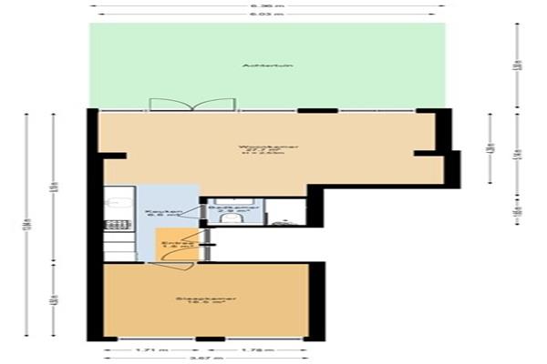Bij binnenkomst in het appartement stap je direct in de moderne open keuken, voorzien van een combi oven/magnetron, een ruime koelkast, vriezer en een strakke afwerking.